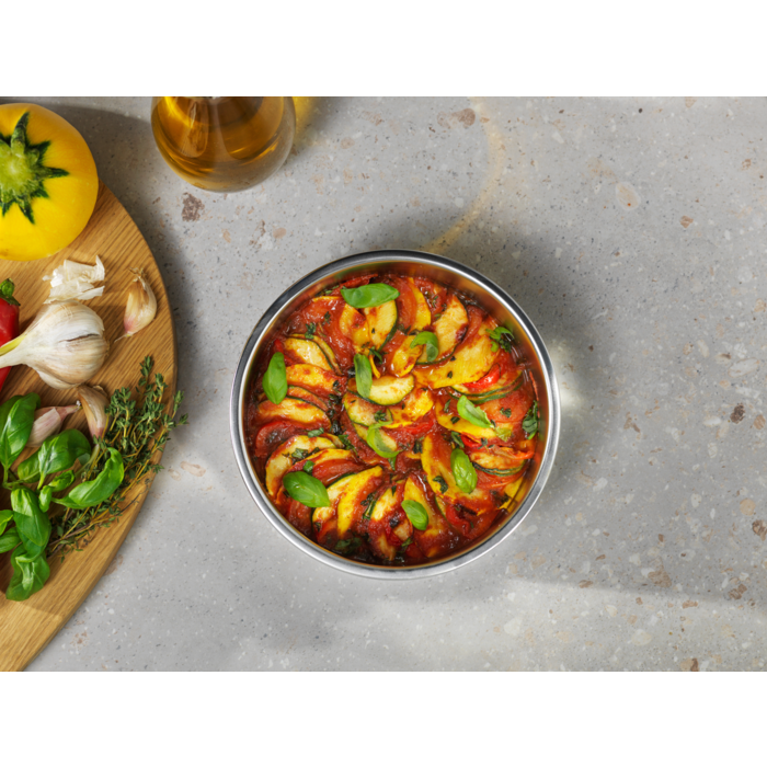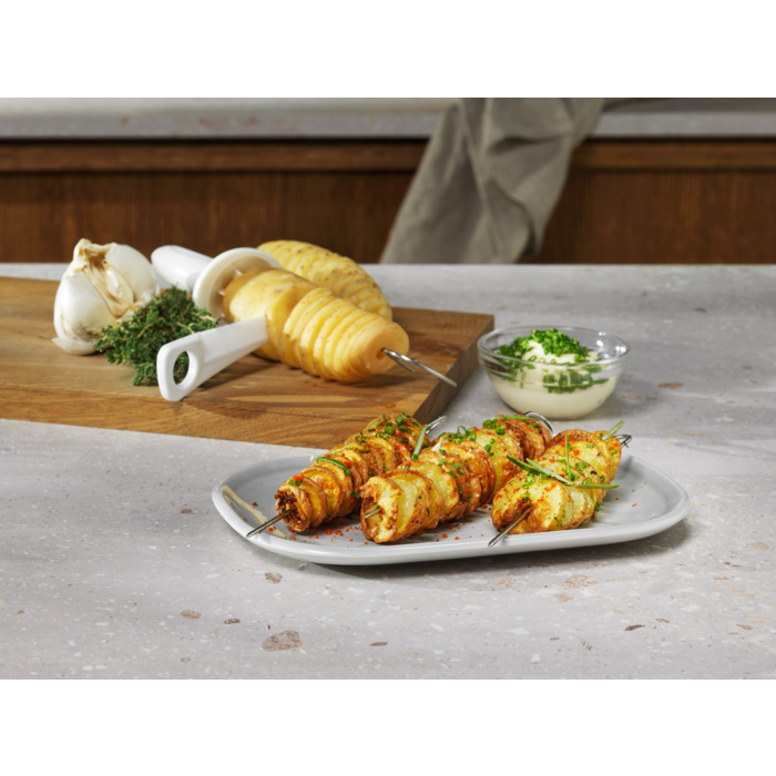 Bir hamur işi kalıbı, şişleriyle birlikte bir ızgara teli ve bir spiral doğrayıcıdan oluşan çok işlevli set, fırınlama, ızgara, kavurma ve kızartma hazırlamayı kolaylaştıran tüm aksesuarları bir araya getirerek tek tek aksesuar satın alma zahmetini ortadan kaldırıyor